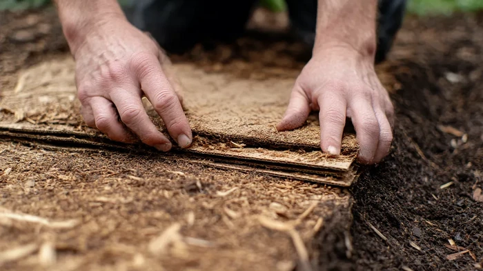 Denne metoden reduserer luking sterkt, bevarer jordfuktigheten og unngår bruk av kjemikalier. Pappen suger gradvis, blir en del av jorden og forstyrrer ikke dens naturlige balanse.